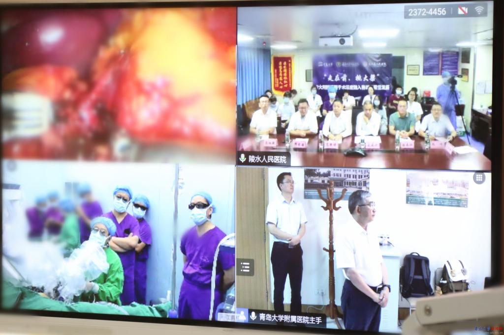 7月8日,青大附院机器人辅助远程手术在青岛市与海南省陵水黎族自治县之间成功开展。此次远程手术由学校、附属医院及陵水县人民医院等多家单位联合完成,校党委书记胡金焱出席并现场观摩,校党委常委、副校长牛海涛现场指导,海南省卫健委医政处处长、海口市卫生健康委主任高新谱,青大附院院长、青大医疗集团总院长李环廷,陵水黎族自治县县委常委、副县长莫泉平等领导出席手术直播活动,青大附院泌尿外科病区主任杨学成作远程手术操作。