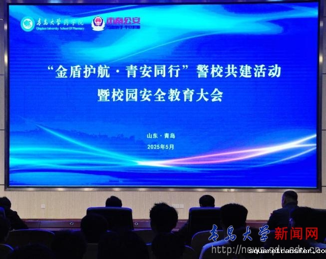 新闻网讯 5月15日下午,药学院联合青岛市公安局市南分局金门路派出所举办的“金盾护航·青安同行”警校共建活动暨校园安全教育大会在医学教育综合楼学术报告厅顺利举行。本次大会旨在进一步深化警校联动机制,强化校园安全教育,提升师生的安全防范意识与应急处理能力,为校园安全筑牢防线。
