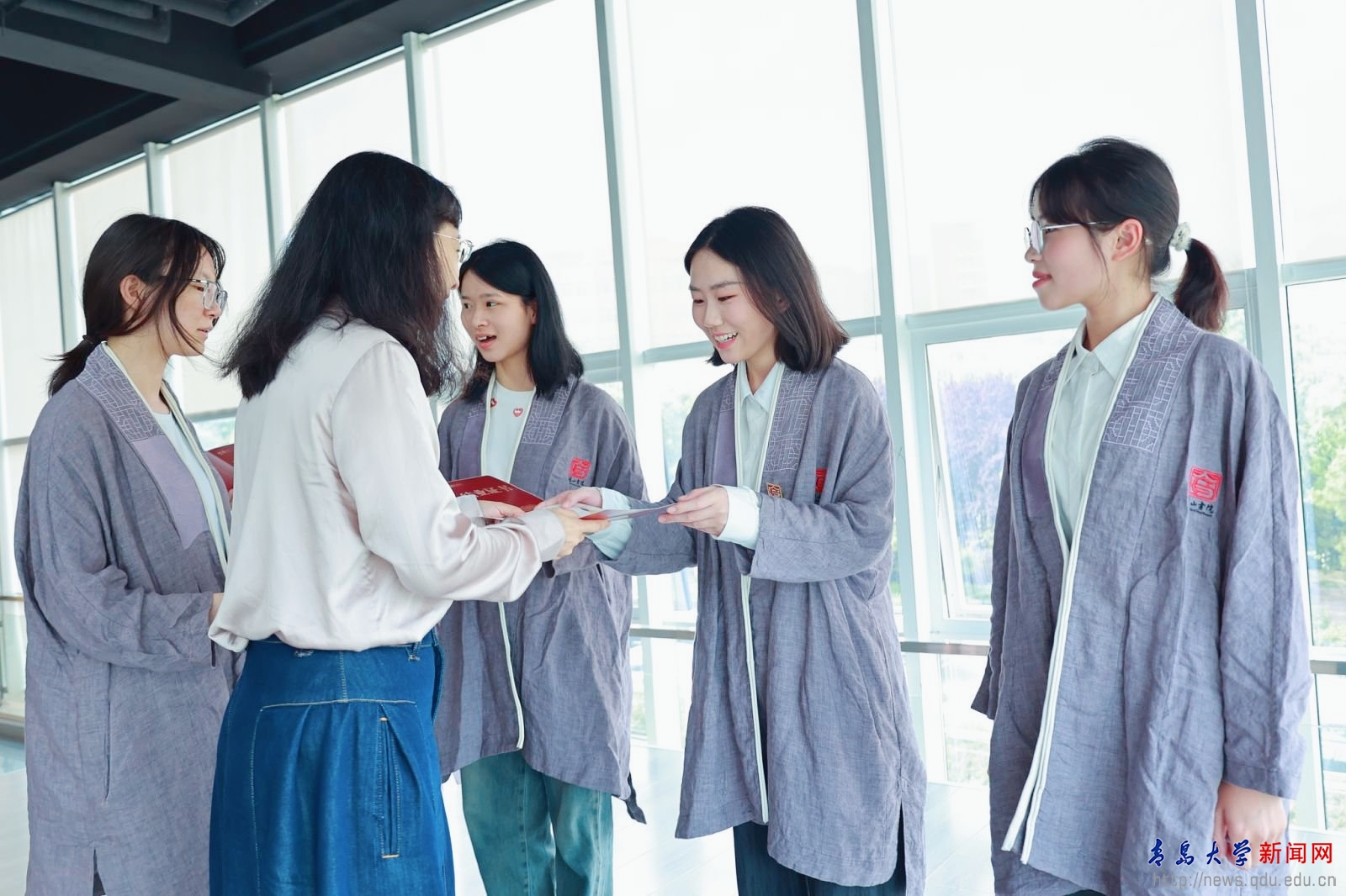适逢农历二十四节气的“芒种”,卢文丽以陶渊明《归园田居》诗句“晨兴理荒秽,带月荷锄归”为引,勉励学子们像农夫耕耘人生田野,忙而有序,累而不苦,在收获中播种希望。文学与新闻传播学院教授、浮山书院《经典阅读与文化传播》课程主讲教师张文彦老师以《与家,与事,与国》为题发表讲话,寄语毕业生处理好家庭、事业与国家的关系,将个体理想融入时代洪流,并以一百年前梁启超写下的“无负今日”与大家共勉。数学与统计学院教授、浮山书院《数学文化》课程主讲教师丁洁玉老师则别出心裁地用一个公式——人生=(理想+思辨)×(努力+方法)2+机遇,阐释人生哲理,指出人生的答案藏在理想与思辨的共鸣里,落在努力与方法的平方上,交由机遇点睛。孙莉、王娟娟、于成等修业导师也分别从“如何建构人生幸福”“美育的意义”“让哲学思辨成为生活日常”等角度寄语毕业生,鼓励他们秉持书院赋予的博雅情怀,成长为现代君子与榜样公民。