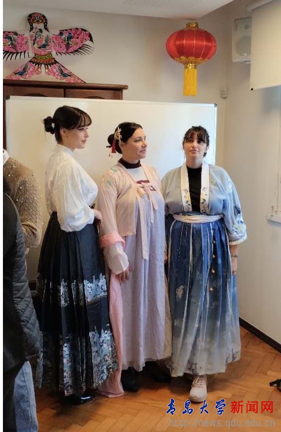 汉服,作为中国传统文化的重要组成部分,承载了中华民族几千年的历史与审美。孔子学院为参与者们精心准备了各种款式的汉服,有飘逸的襦裙、庄重的深衣、华丽的大袖衫、马面裙等。老师们热情地帮助大家穿上汉服,挑选发簪,整理好裙摆和衣带。当大家穿上汉服的那一刻,仿佛穿越时空,回到了古代。这一刻,他们不仅感受到了汉服之美,更体会到了中国传统文化的独特魅力。